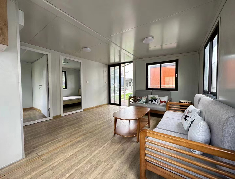 :全部采用高性能快拼箱系统。箱体在工厂完成90%以上的装修,现场仅需简单拼装。墙体采用加厚保温层,门窗密封等级高。