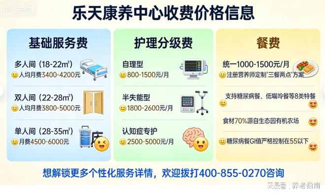 乐天康养中心2026年2月最新收费标准为3400元/月起(以院内报价为准)