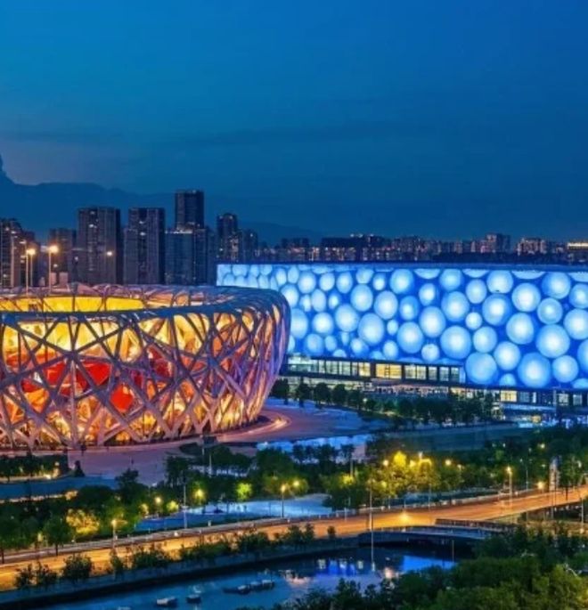 乘缆车直达北八楼,打卡“好汉坡”,下午返回市区,傍晚打卡鸟巢、水立方灯光秀,小林教用广角镜头拍倒影,朋友圈“穿越感”照片被问爆。